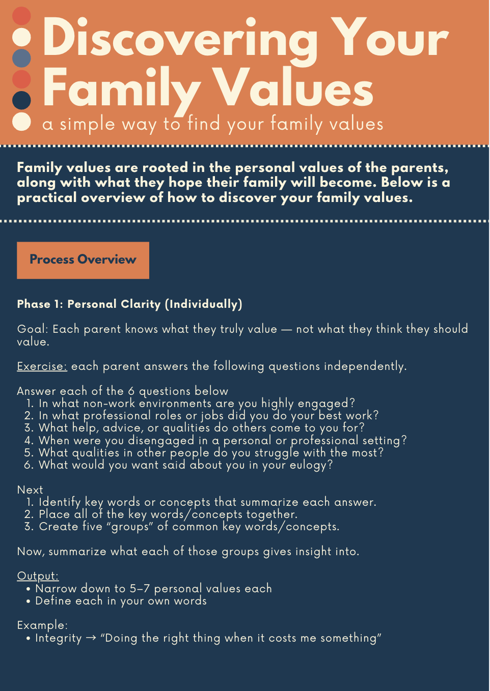 Discovering Your Family Values a simple way to find your family values Family values are rooted in the personal values of the parents, along with what they hope their family will become. Below is a practical overview of how to discover your family values. Click here to download :) Our book is available now for pre-sale! Pre-order here!
